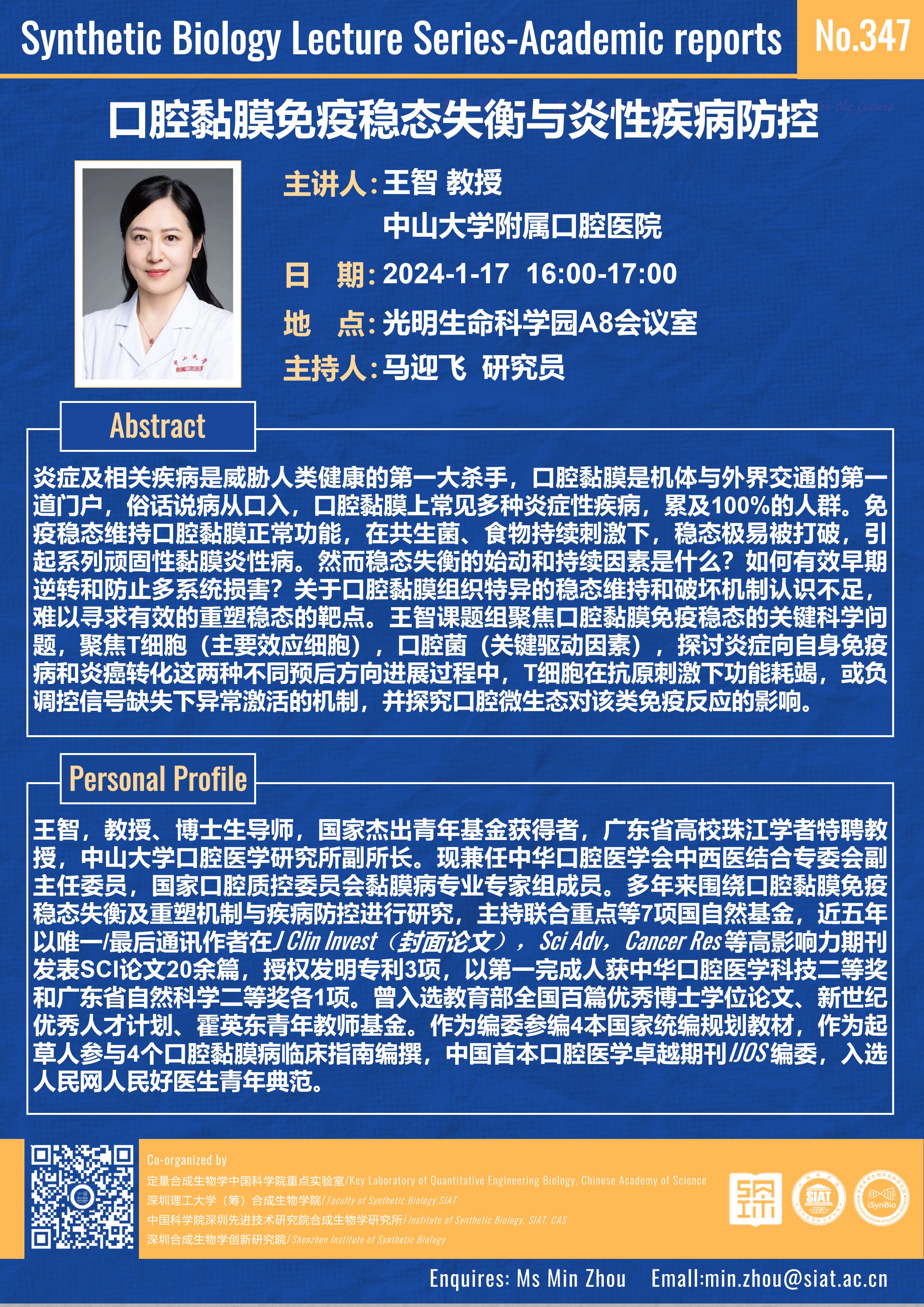 【2024年 1月17日 合成所/合成生物学院】口腔黏膜免疫稳态失衡与炎性疾病防控