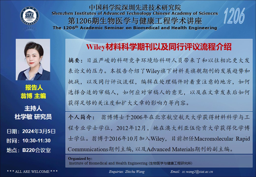【2024年3月5日 医工所】Wiley材料科学期刊以及同行评议流程介绍