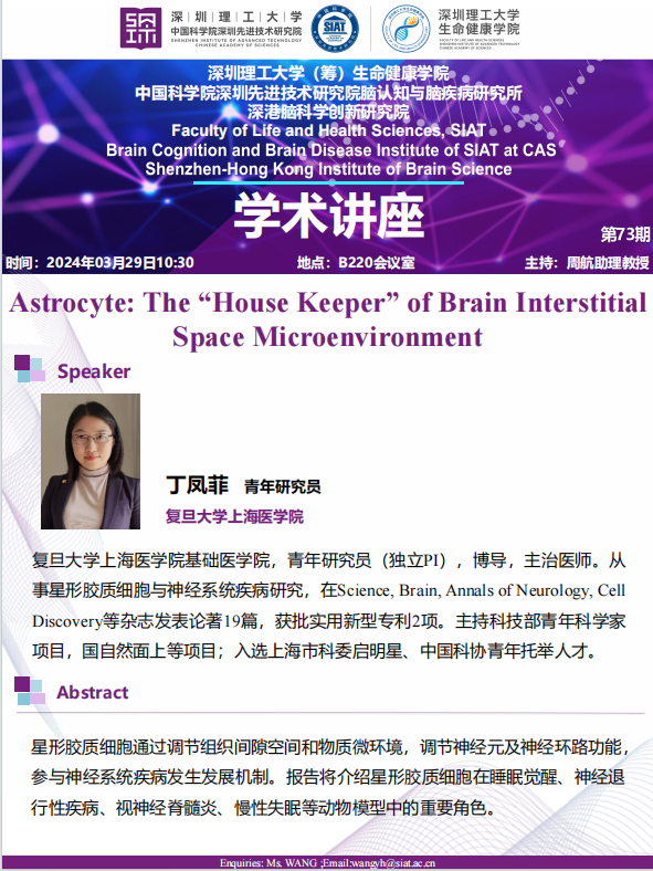 【2024年3月29日 生命健康学院/脑所】Astrocyte: The“House Keeper” of Brain Interstitial Space Microenvironment