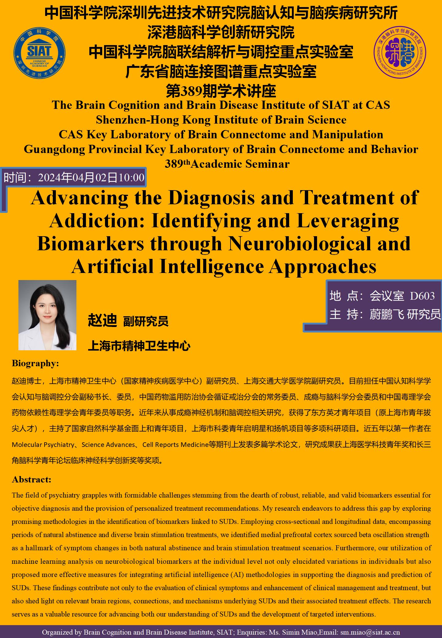 【2024年4月2日 脑认知与脑疾病研究所】Advancing the Diagnosis and Treatment of Addiction: Identifying and Leveraging Biomarkers through Neurobiological and Artificial Intelligence Approaches