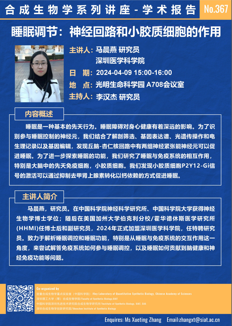 【2024年4月9日 合成所/合成生物学院】睡眠调节:神经回路和小胶质细胞的作用