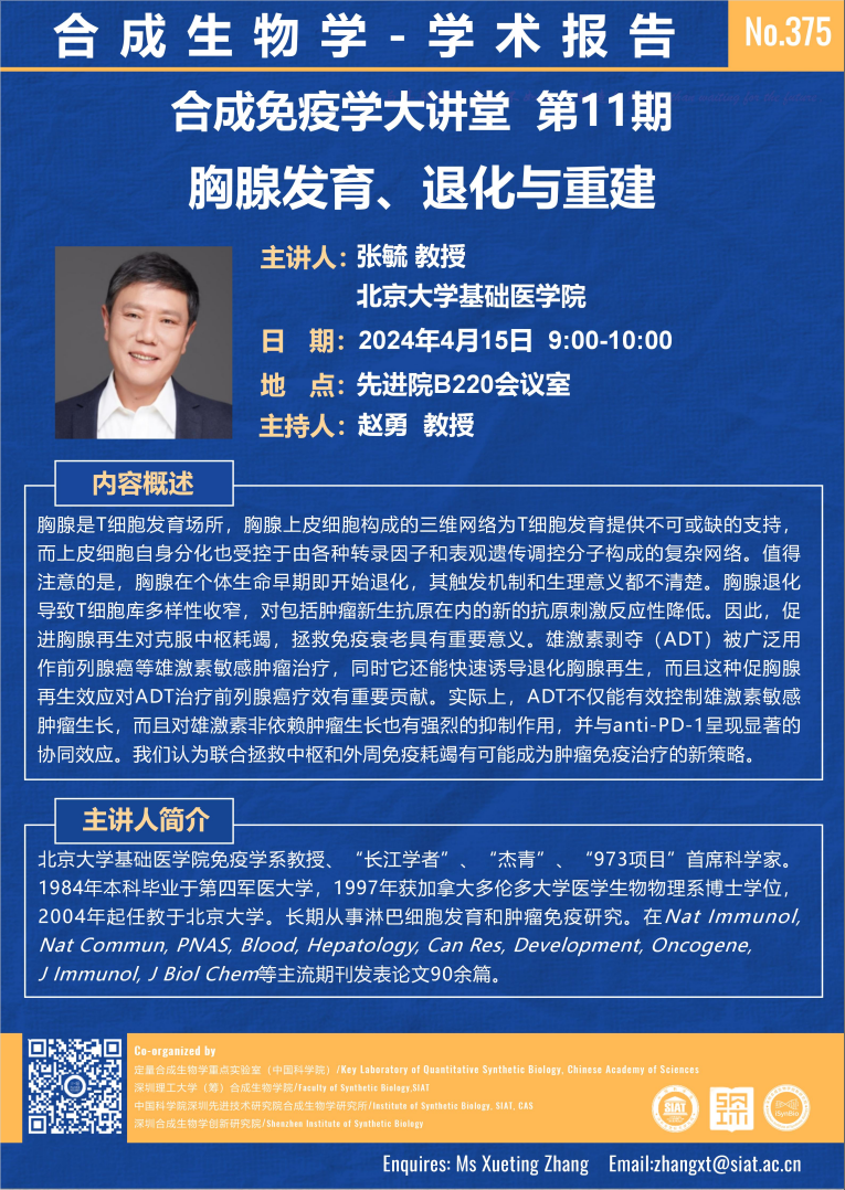 【2024年4月15日 合成所/合成生物学院】胸腺发育、退化与重建