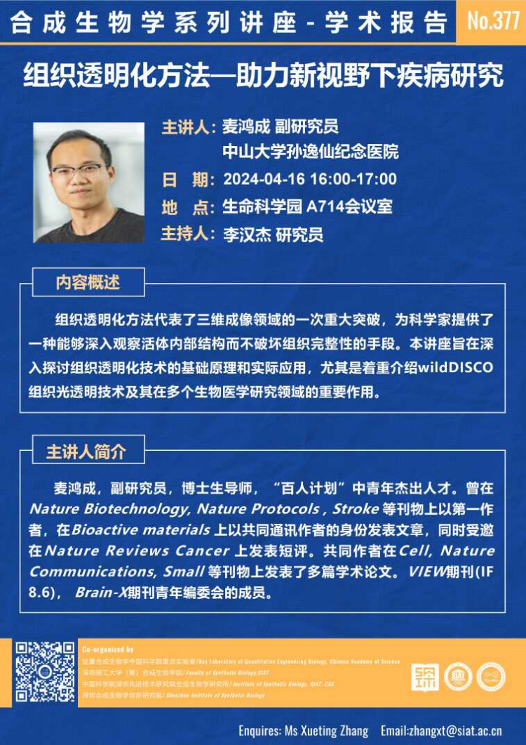 【2024年4月16日 合成所/合成生物学院】组织透明化方法—助力新视野下疾病研究