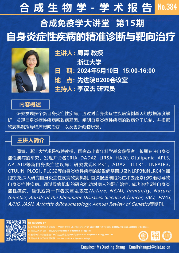 【2024年5月10日 合成所/合成生物学院】自身炎症性疾病的精准诊断与靶向治疗