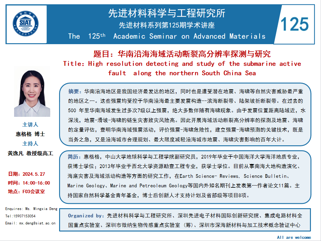 【2024年5月27日 材料所】华南沿海海域活动断裂高分辨率探测与研究