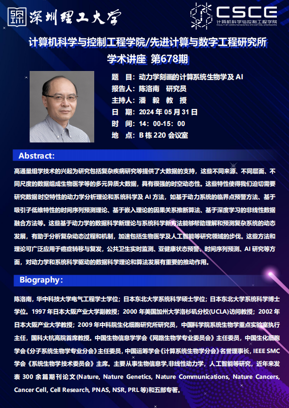【2024年5月31日 计算机学院/数字所】动力学刻画的计算系统生物学及AI