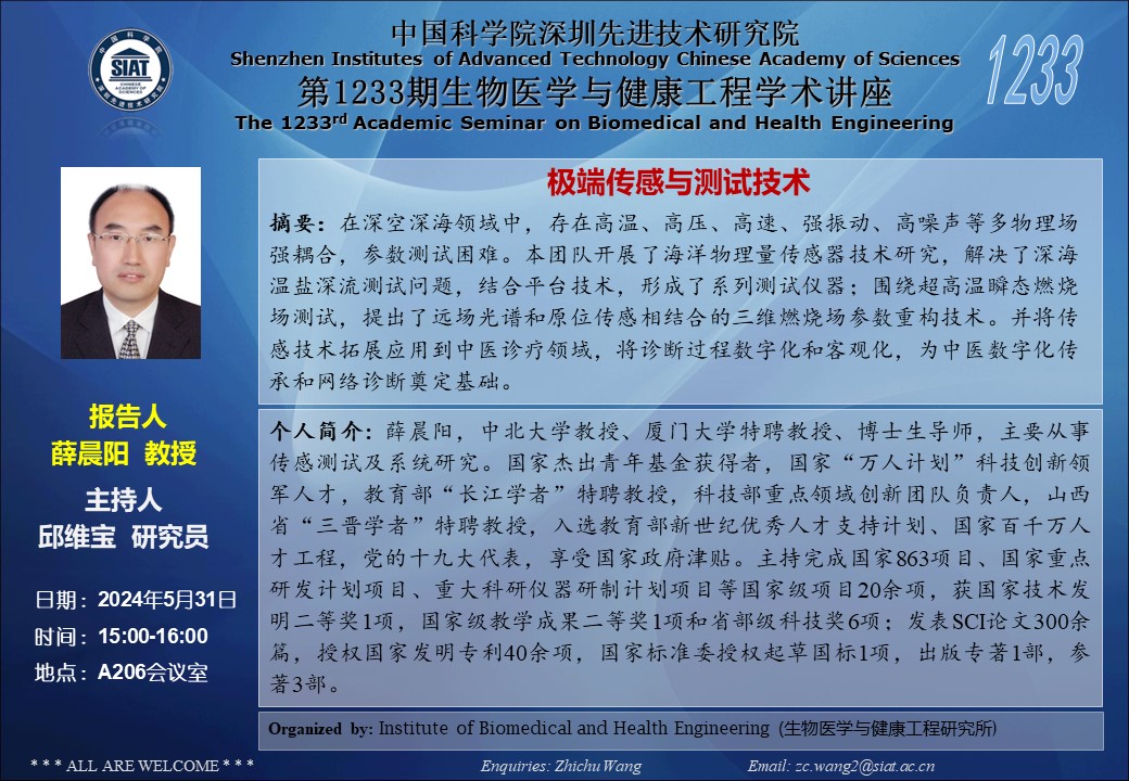 医工所第1233期学术讲座将于 2024年5月31日(周五) 15:00-16:00 在A206会议室举行。