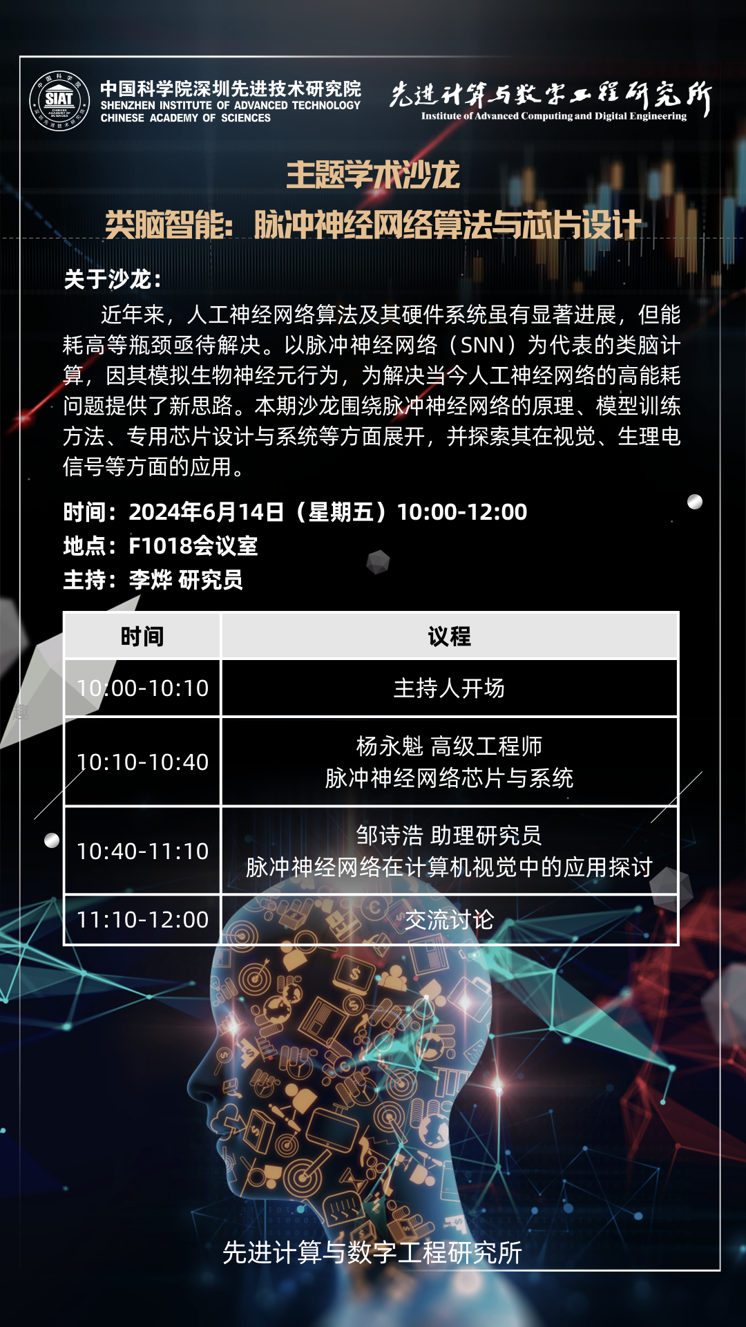 【2024年6月14日 数字所】“类脑智能:脉冲神经网络算法与芯片设计”学术交流沙龙
