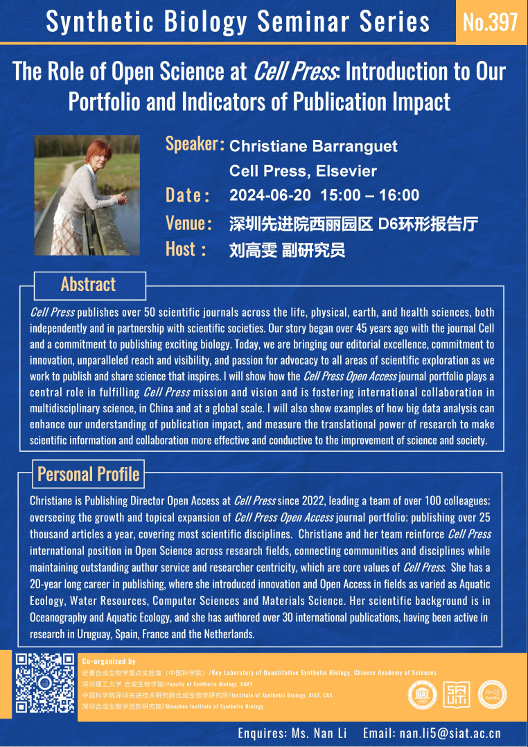 【2024年6月20日 合成所/合成生物学院】The Role of Open Science at Cell Press: Introduction to Our Portfolio and Indicators of Publication Impact