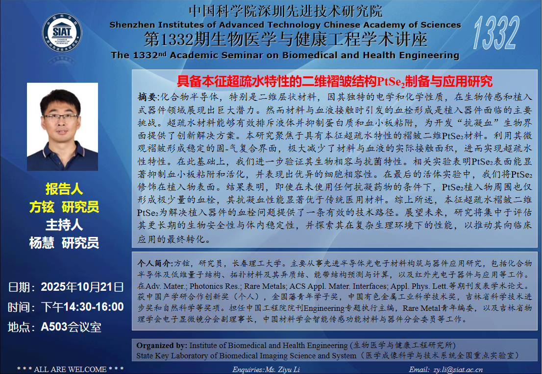 本次讲座邀请了方铉 研究员带来题为“具备本征超疏水特性的二维褶皱结构PtSe2制备与应用研究”的报告。