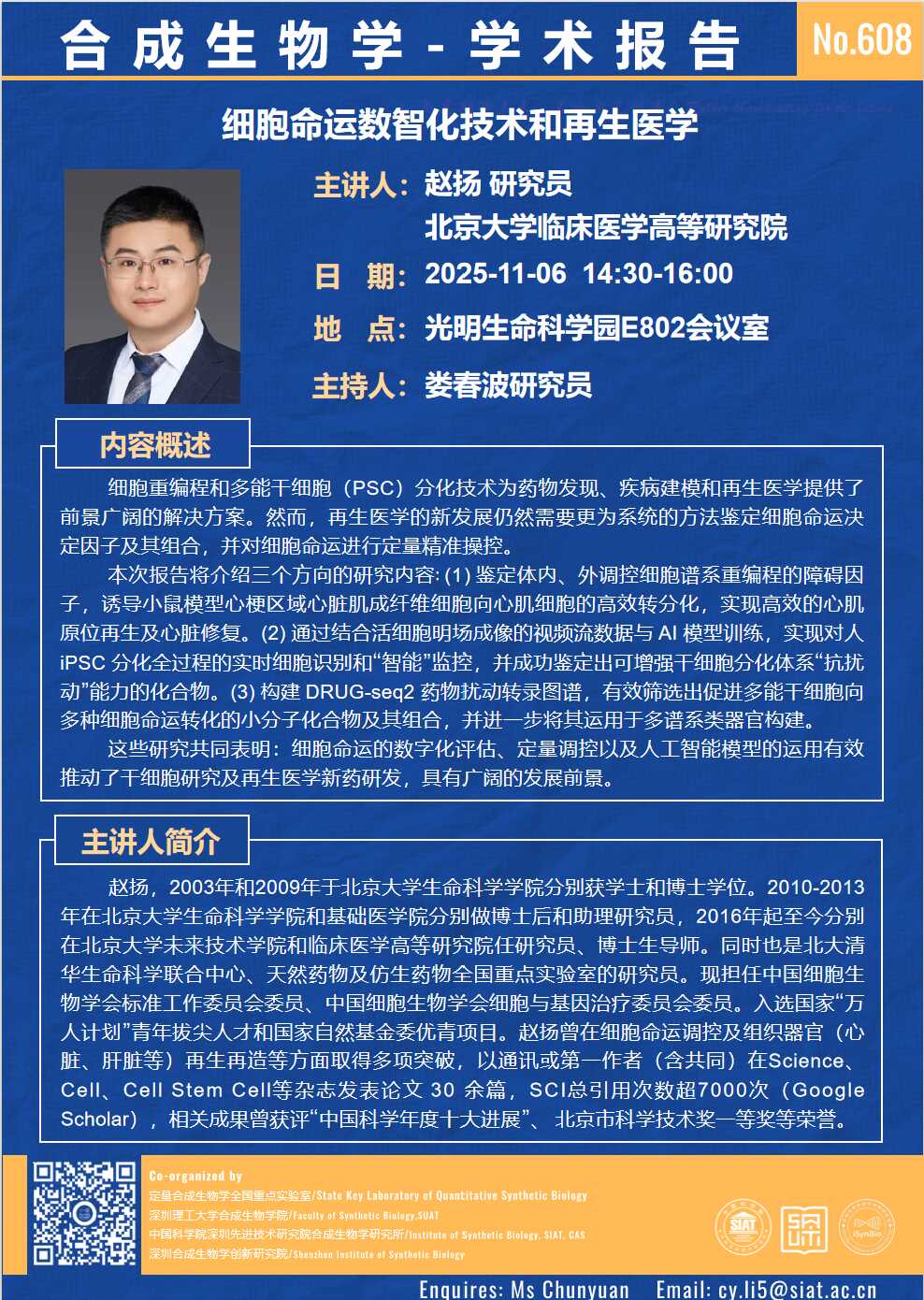 【2025年11月6日 合成所/合成生物学院】细胞命运数智化技术和再生医学