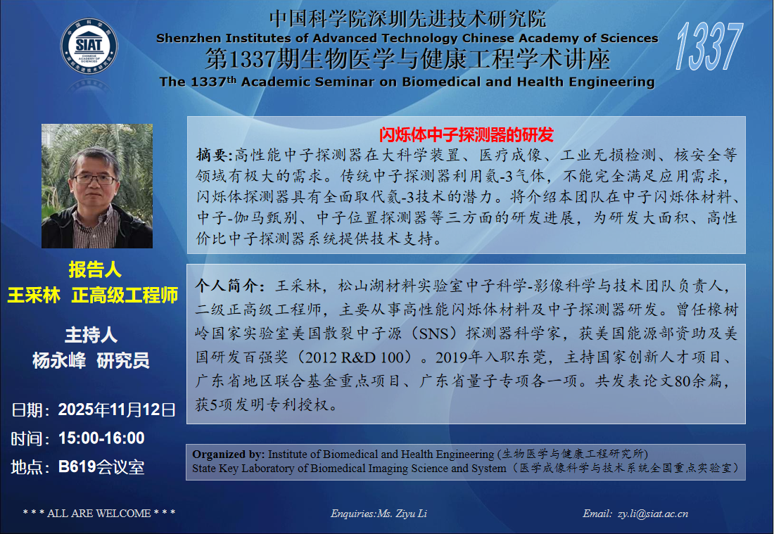 医工所第1337期学术讲座将于 2025年11月12日(周三)15:00-16:00 在B619会议室举行。