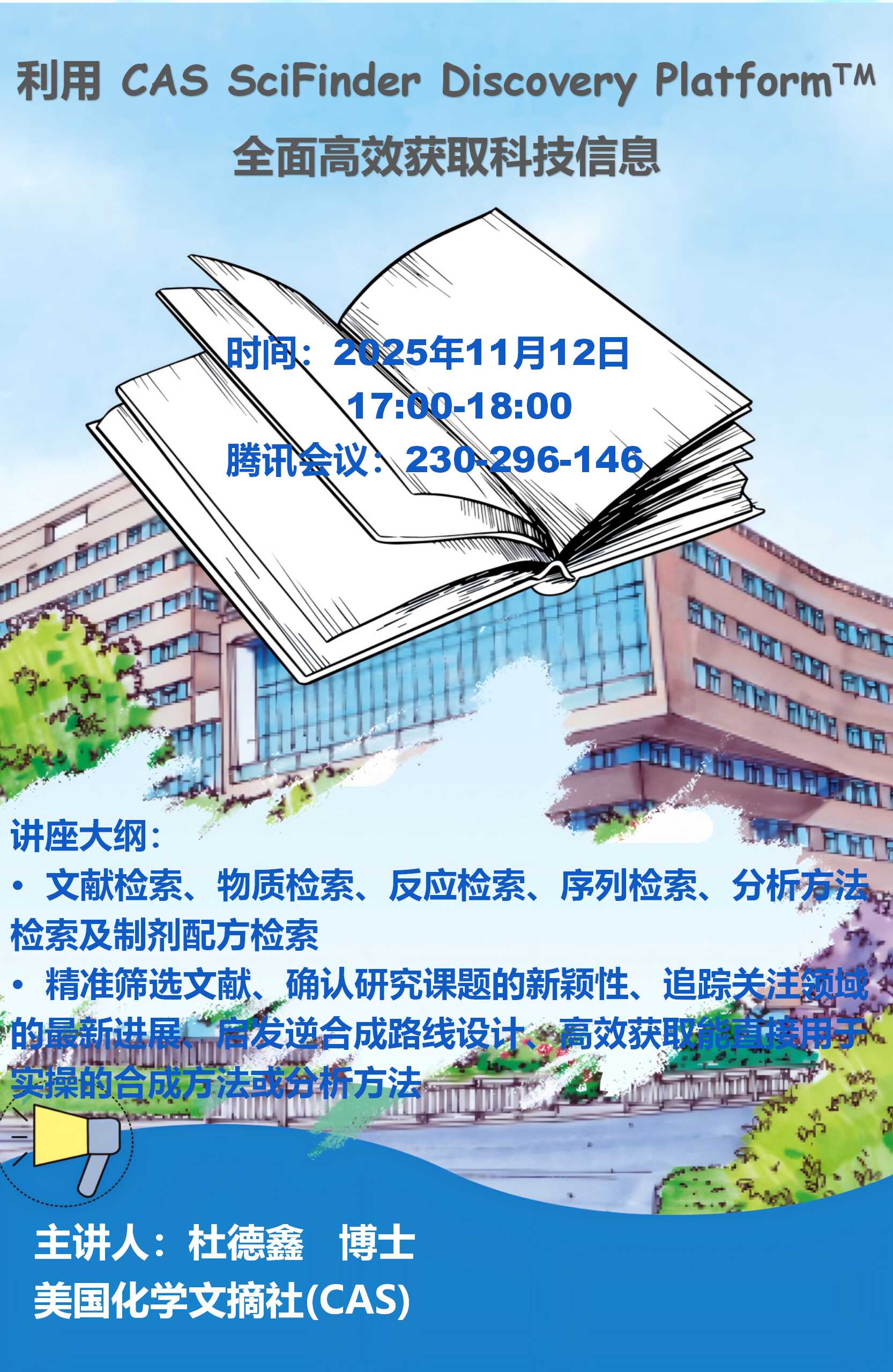 【2025年11月12日 图书馆】利用 CAS SciFinder Discovery Platform™全面高效获取科技信息