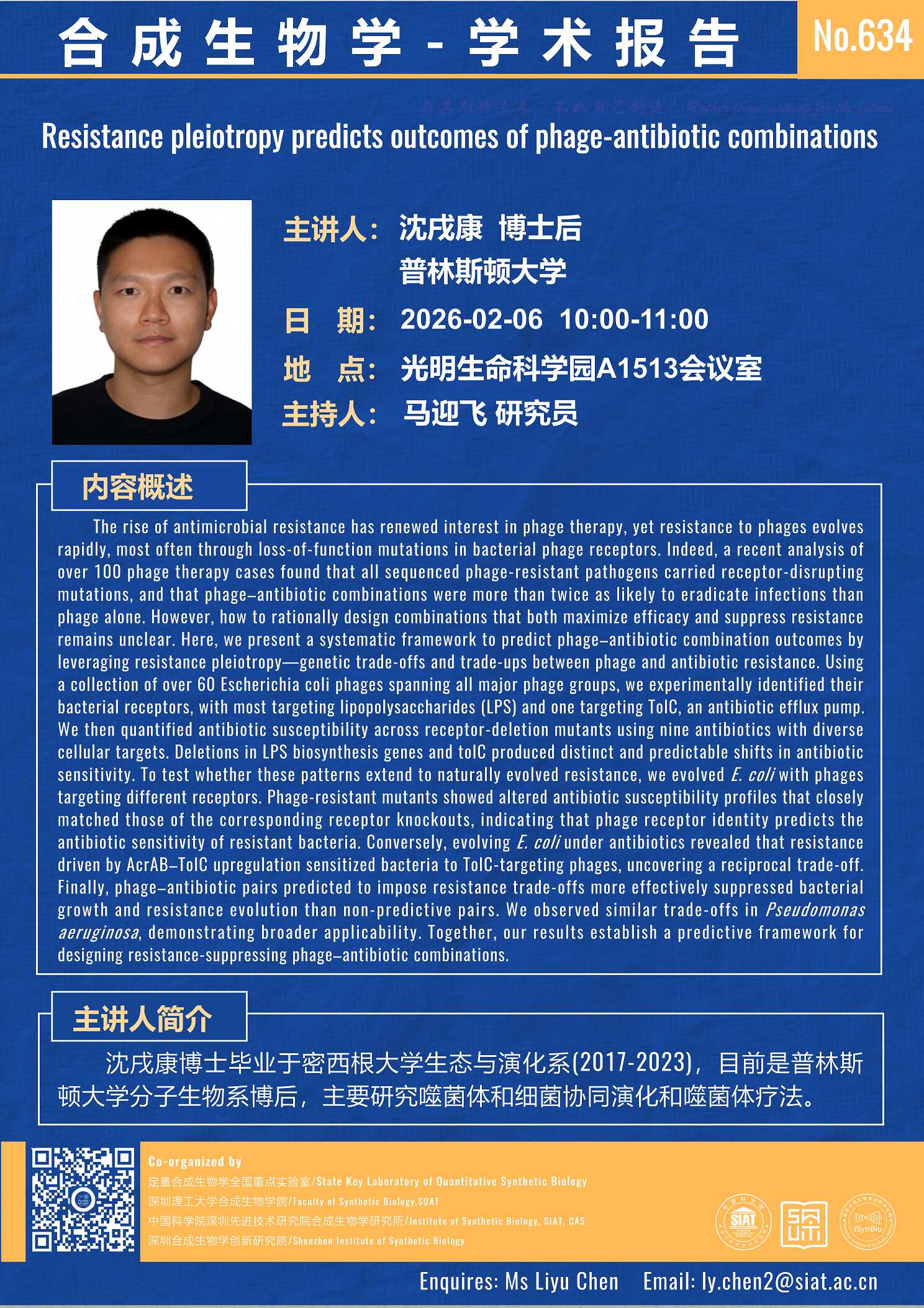 【2026年2月6日 合成所/合成生物学院】Resistance pleiotropy predicts outcomes of phage-antibiotic combinations