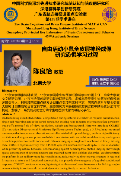 【2026年3月20日 脑所/深港脑院】自由活动小鼠全皮层神经成像研究恐惧学习过程