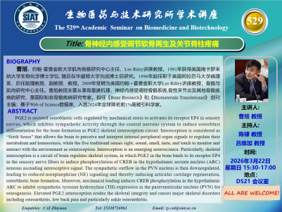 【2026年3月22日 医药所】骨神经内感受调节软骨再生及关节脊柱疼痛