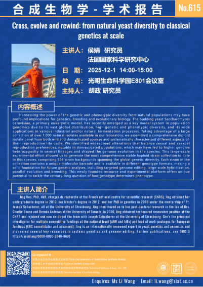 【2025年12月1日 合成所/合成生物学院】Cross, evolve and rewind: from natural yeast diversity to classical genetics at scale
